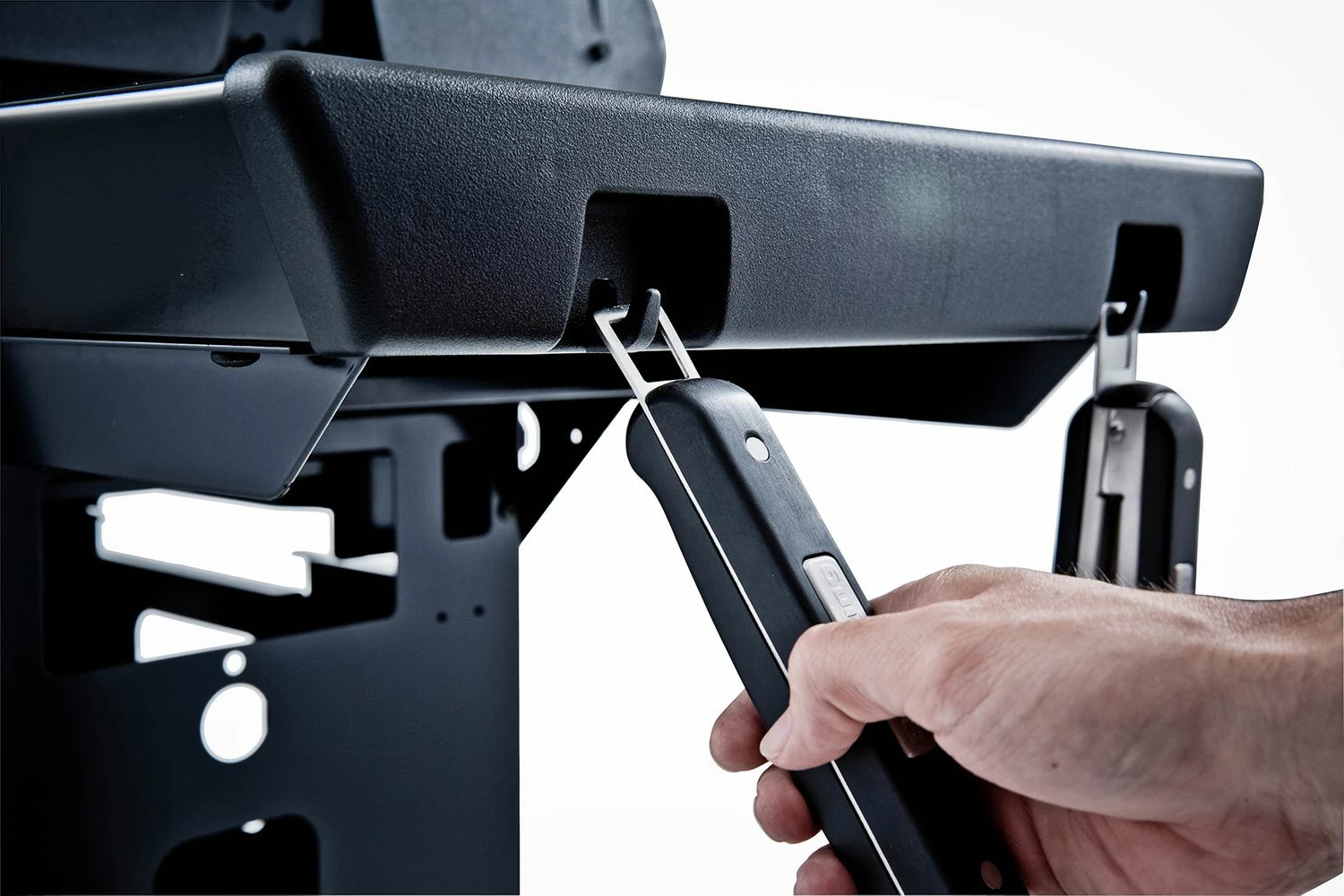 Zum Garen von Beilagen, zum Zubereiten von leckeren Soßen oder auch einfach nur zum Warmhalten der bereits fertigen Speisen besitzt der Signet 340 einen Seitenbrenner integriert in eine Seitenablage. Die leistungsstarke Seitenkochplatte erzeugt mit 2,7 kW genügend Hitze um auch mit einem Wok arbeiten zu können. An beiden Seitenablagen befinden sich praktische Zubehörhaken für Grillbesteck, Geschirrtücher und andere Grillutensilien die Sie direkt am Grill aufbewahren möchten.