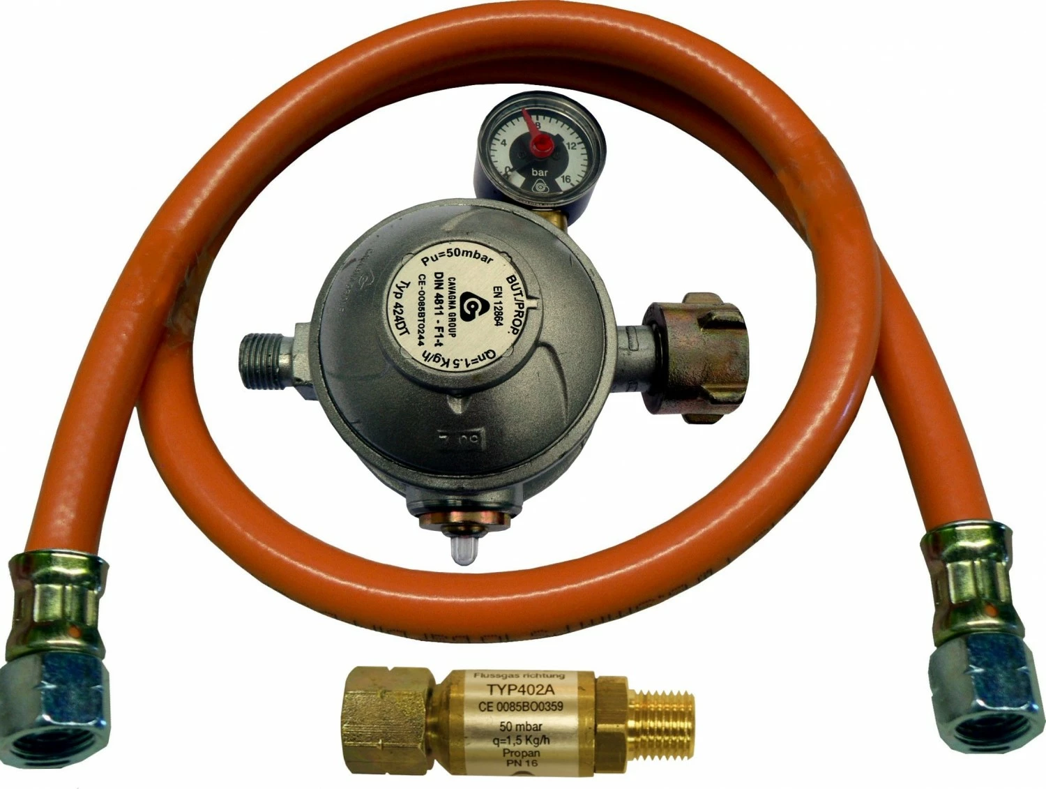 - 1 x TGO Profi Anschlussgarnitur mit Sicherheitsdruckregler und Schlauchbruchsicherung