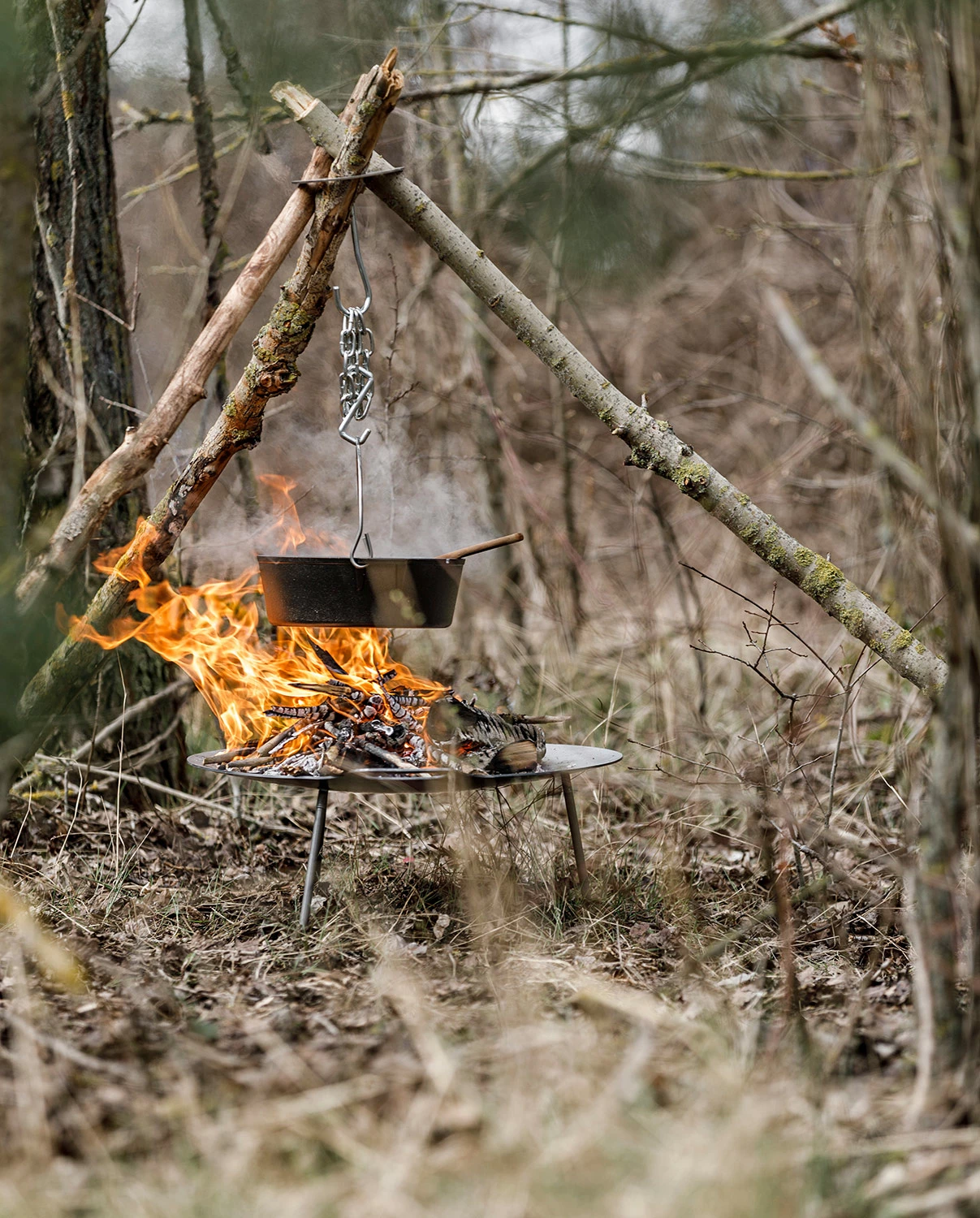 - mit Kette und zwei Haken zum Einhängen von Töpfen, Kesseln und Dutch Oven